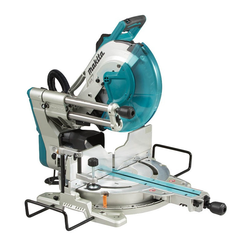 Ingletadora telescópica de 1.800 W de potencia de disco de 305 mm., Nuevo diseño de con doble guía telescópica, proporciona mayor estabilidad a la vez que ahorramos espacio al no sobresalir el brazo por su parte trasera. El exclusivo diseño del sistema de deslizamiento de 2 carriles de acero permite el funcionamiento al ras contra una pared.Mayor capacidad para molduras de corona de hasta 203 mm., zócalos (vertical inclinado) de 171 mm. y cortes transversales (vertical) de 382 mm. a 90°. Doble salida de extracción de polvo y viruta, en la base y en el disco.Nuevo diseño del tirador de bloqueo de guía telescópica y cabezal basculante. Empuñadura horizontal. Freno eléctrico y arranque suave que realiza una puesta en marcha sin tirones y da una vida útil más larga del engranaje.