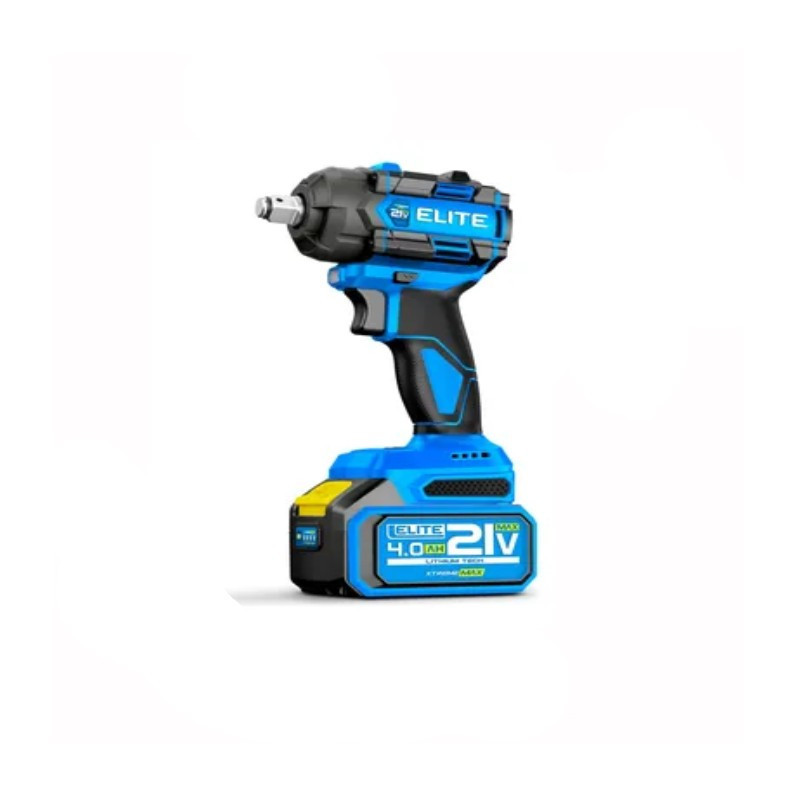 Llave de impacto inalámbrica profesional Elite XIW2155K diseñada para trabajos exigentes de apriete y afloje de tuercas y pernos. Funciona a 21 V y cuenta con motor sin escobillas brushless que ofrece mayor eficiencia, menor desgaste y vida útil prolongada.  Entrega tres niveles de torque seleccionables de 300 Nm, 400 Nm y hasta 500 Nm, ideal para aplicaciones de montaje, anclaje, mantenimiento automotriz y trabajos en altura. Su diseño inalámbrico elimina la necesidad de extensiones eléctricas, permitiendo mayor movilidad y seguridad en zonas donde la red eléctrica es limitada. Incorpora sistema de impacto de hasta 3.300 BPM y velocidad variable de hasta 2.500 RPM para un control preciso en cada aplicación.