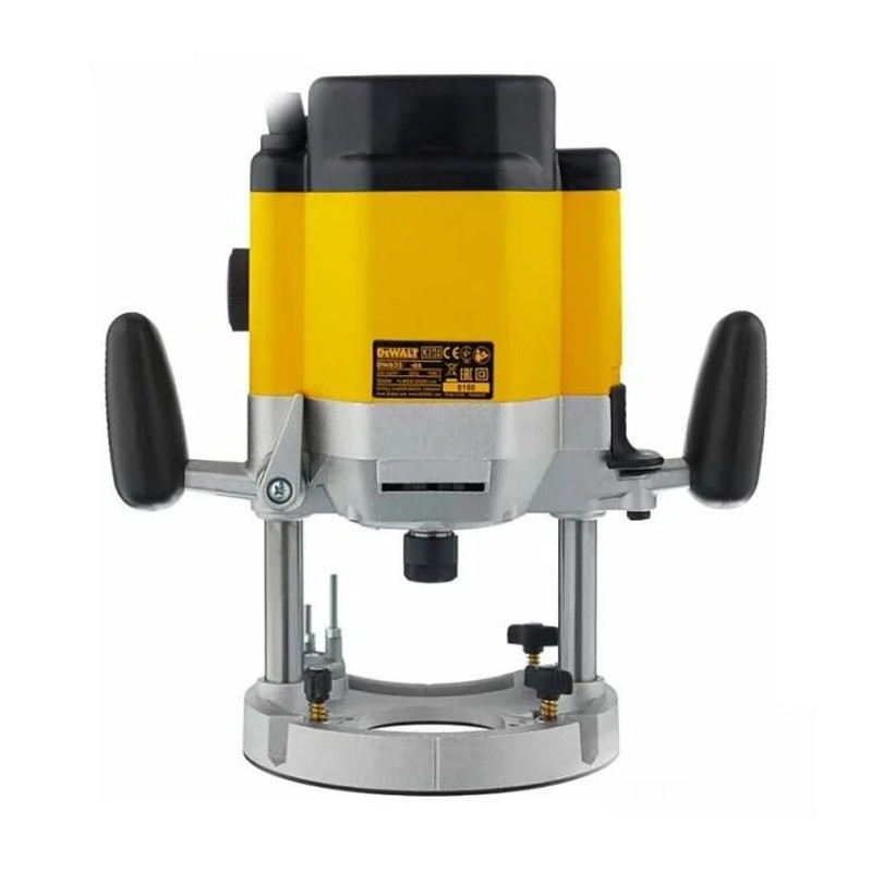 Características: Motor de 15 Amp con arranque suave y constancia en su operación. Motor electrónico de velocidad variable funciona a 8,000-22,000 rpm bajo carga para un acabado de calidad en todo tipo de material. Regulador de profundidad de cremallera y piñón con ajuste micro fino permite graduación rápida y precisa. Bujes de bronce fosforado para un hundimiento más suave de la fresa. Adaptador del extractor de polvo para áreas de trabajo más limpias. Collets de 1/4" a 1/2" para mayor versatilidad. Traba de eje permite cambiar las fresas con una sola llave. Base con adaptador de guías estándares para trabajo de copias. Eje de motor de una pieza asegura precisión y perpendicularidad. Especificaciones Técnicas: Amperios: 15 amps. Watts 1,850 W Velocidad sin carga: 8,000-22,000 rpm Diámetro de collet: 1/4", 1/2" Recorrido vertical: 2- 7/16"